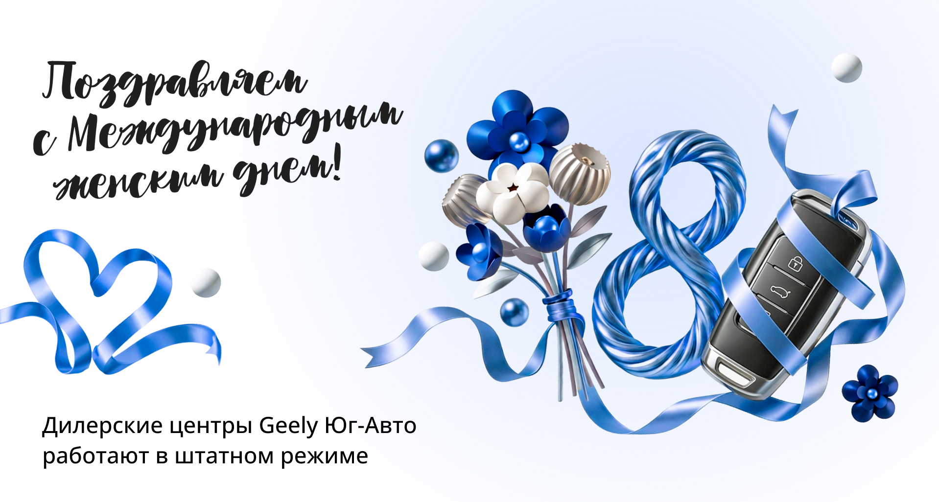 Коллектив дилерского центра Geely Юг-Авто поздравляет вас с Международным женским днем. Мы высоко ценим ваше доверие и желаем стабильности, неизменного успеха во всех делах. Пускай каждый день преподносит яркие впечатления, а весна принесет с собой новые возможности.